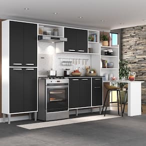 Produto Composto Por: 1 Nicho Horizontal, 1 Armário Aéreo de 105 Cm, 1 Paneleiro Duplo, 1 Balcão Com Tampo de 105 Cm, 1 Mesa Dobrável, Manual de Montagem E. Kit Ferragem.
