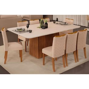 Sala de Jantar Completa Canes Tampo Madeirado c/ Vidro Curvo 200x100cm e 8 Cadeiras Julia Freijo/Off White - Suede Kraft - DJ Móveis Abaixo segue os produtos do KIT: Sala de Jantar Completa Canes Tampo Madeirado c/ Vidro Curvo 200x100cm e 8 Cadeiras Julia Freijo/Off White - Suede Kraft - DJ Móveis