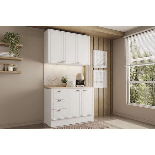 BALCÃO COZINHA C/ TAMPO BELLA 2608 C/ 2 PORTAS E 3 GAVETAS 120CM BRANCO - CARRARO Quantidade: 1 unidade(s) Dimensões: Largura: 120 cm Comprimento(Profundidade): 120 cm Altura: 90,5 cm