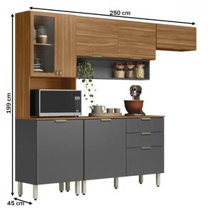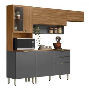 O(a) Cozinha Completa Charge 8 Portas 2 Gavetas com Vidro Amêndola/Grafito Prime Tx - Pnr Móveis é produzido em MDP na escala de brilho Fosco, e possui um grau de dificuldade de montagem: Difícil.