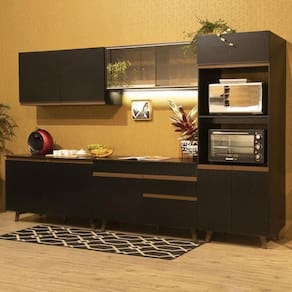 Se você quer deixar sua cozinha com um design muito mais moderno e sofisticado, a Cozinha Completa Madesa Reims com Armário e Balcão Preto é a escolha perfeita!