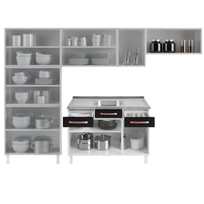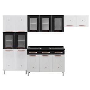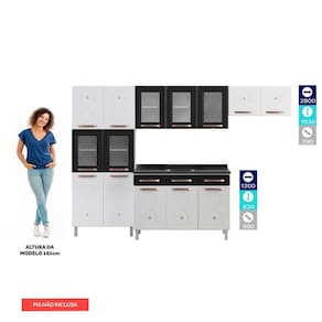 Garantia: 12 (doze) meses para defeitos de fabricação Acabamento da Prateleira: Pintura Escala de Brilho da Prateleira: Brilhante Acabamento da Gaveta: Polipropileno Escala de Brilho da Gaveta: Fosco Material do Puxador da Gaveta: Poliestireno Acabamento da Porta: Pintura Escala de Brilho da Porta: Brilhante Material do Puxador da Porta: Poliestireno Acabamento dos Pés: Polipropileno Acompanha Tampo: Não Altura dos Pés: 14,6 cm Altura Máxima dos Pés: 14.6000 Ambiente Principal: Cozinha codigo_ean: 7908308794405 Complexidade da Montagem: Média: pode ser montado por mais de uma pessoa e/ou necessite de maior conhecimento para montagem Cor: Branco/Preto Cor do Produto: Branco/Preto Escala de Brilho: Brilhante Gaveta com Chave: Não Itens Inclusos: Cozinha,kit ferragens e manual de montagem Linha ou Coleção: Mirage New - Telasul Manual de Montagem e Instalação: https://product-hub-prd.madeiramadeira.com.br/842099/documents/e063d123-88c2-43bd-b0e5-6550c40042b7126719481548402compressed.pdf Material da Dobradiça/Corrediça da Porta: Metálica Material da Gaveta: Polipropileno Material da Porta: Aço Material da Prateleira: Aço Material do Fundo: Aço Material dos Pés: Polipropileno Medida de cada item (A x L x P): Paneleiro: 193cm x 80cm x 29cm; Armário Duplo: 37,5cm x 80cm x 29cm; Armário Triplo: 55cm x 120cm x 29cm; Balcão: 83cm x 120cm x 50cm Medida do Recorte para Cooktop: Não se aplica Necessita Montagem: Sim O Balcão Acompanha Pia: Não Origem do Produto: Nacional Pés Reguláveis: Sim Peso: 75,36 kg Peso Máximo por Gaveta: 3 kg Peso Máximo por Prateleira: 15 kg Possui Pés: 06 Possui Portas: Sim Possui Prateleiras: Sim Possui recorte para Cooktop: Não Possui Rodízio: Não Produto Montado: Sim Recomendações de Uso, Manutenção e Limpeza: A limpeza deve ser feita com pano macio e seco ou levemente umedecido com água e sabão neutro. Não devem ser utilizados produtos como palha de aço ou qualquer material que arranhe a superfície de seu produto.Evite guardar substâncias como sal, vinagre, limão, cebola, etc. em contato direto com o móvel.Recomenda-se forrar as prateleiras com papel ou plástico liso nas áreas de maior atrito. Sapatas Niveladoras: Não Sistema de Montagem: Parafuso, porca e acessórios plásticos Suporta Até (kg): 171 kg Tamanho Indicado da Pia: 120 Tamanho Indicado do Tampo: Não se aplica Tipo de Corrediça da Gaveta: Simples Tipo de Dobradiça da Porta: Simples Tipo de Puxador da Gaveta: Externo Tipo de Puxador da Porta: Externo Ean: 7908308794405