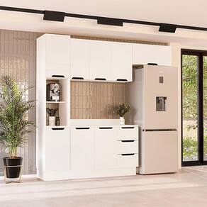 Que tal a Cozinha Completa Meena? Seu cômodo de chef precisa de ótimos espaços e, claro, de móveis bonitos que deixem o espaço acolhedor, né? Por isso que a Cozinha Completa Meena une design clean e charmoso com a usabilidade ideal: ela tem todos os compartimentos necessários para que sua rotina fique mais prática. Por falar em praticidade, as gavetas contam com corrediças telescópicas, que abrem mais e melhor. Ah, esse modelo já acompanha tampo fechado, então você ainda ganha um belo apoio na hora de preparar suas receitas ;) Marca: Não Informado