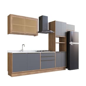 Itens Inclusos: 1 Balcão 120cm, 1 Balcão 80cm, 1 Torre Quente 70cm, 1 Aéreo 80cm, 1 Aéreo 120cm e 1 Manual de Montagem.