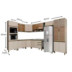 Cozinha Completa Connect 15 Peças (5Aéreos+3Balcões+2Paneleiros+5Complementos) s/Pia C15P01 Duna/Cristal - Henn