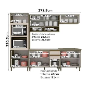 Cozinha Completa Connect 6 Peças (2Aéreos+2Balcões+1Paneleiro+1Complemento) s/Pia CPT96 Duna/Cristal - Henn Abaixo segue os produtos que compoem o KIT: