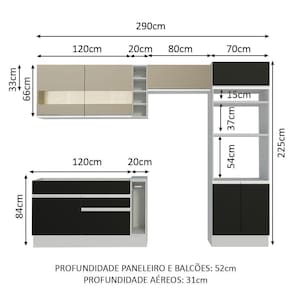 - Profundidade: 52 cm nos balcões | Aéreos 31 cm;x
