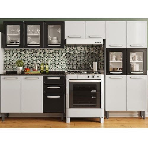 Cozinha Completa Modulada Bertolini Evidence 4 Peças (Paneleiro+2 Armários(1 c/ Vidro)+Gabinete)