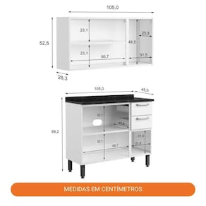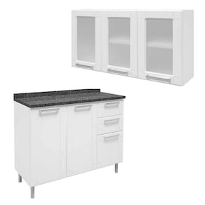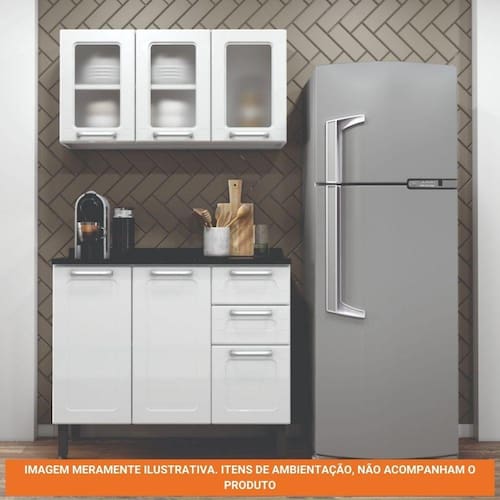 Cozinha completa de Aço com Armário Aéreo Triplo e Balcão de Cozinha 3 Portas Multipla Bertolini Branco