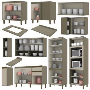 Cozinha Completa de Canto 10 Peças Connect com Torre Quente e Cristaleira - Móveis Henn