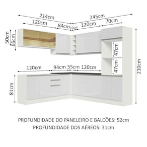 - 52 cm de profundidade nos balcões e 31 cm nos aéreos