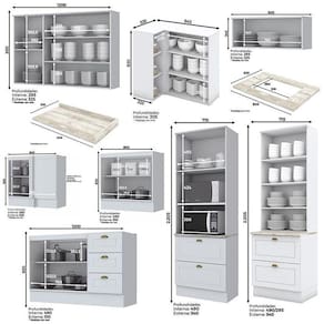 Espaço para eletrodoméstico: 1- 42,4 x 68,4 x 48,0 cm e 2- 38,6 x 68,4 x 53,3 cm