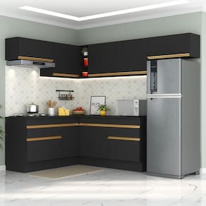 Conteúdo da Embalagem: 2 (dois) armários aéreos 70cm 1 (um) armário aéreo de canto 90cm 1 (um) armário aéreo 120cm 1 (um) balcão com tampo 70cm 1 (um) balcão com tampo de canto 90cm 1 (um) balcão com tampo 120cm 1 (um) kit com rodapés