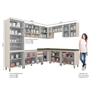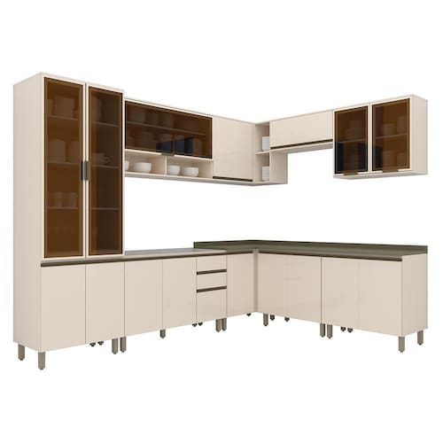 Cozinha Completa de Canto Connect 9 Peças com Cristaleira - Móveis Henn