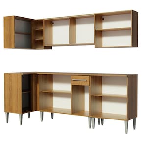 Buscando uma solução completa e com ótimo aproveitamento dos espaços? Confira a Cozinha Emilly Point de Canto Reto da Madesa. São três balcões, três armários aéreos e uma adega acoplada, perfeitos para organizar os utensílios, louças e eletros. Além disso, todos os módulos são separados, possibilitando a montagem conforme a necessidade do seu ambiente.