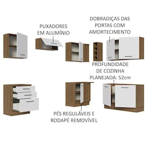 Para completar, a cozinha conta com pés reguláveis em PVC e rodapé removível em MDP de fácil encaixe, para retirar na hora de realizar a limpeza.