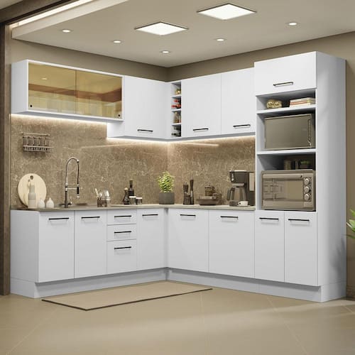 Este modelo de Cozinha Completa de Canto da linha Agata da Madesa se destaca pelo conforto, espaço de sobra e acabamento de alta qualidade.