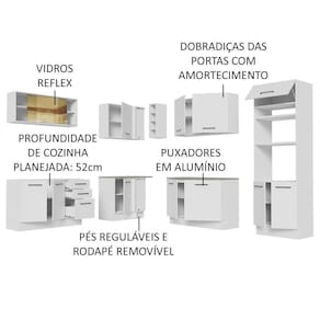 Para completar, a cozinha conta com pés reguláveis em PVC e rodapé removível em MDP de fácil encaixe, para retirar na hora de realizar a limpeza.