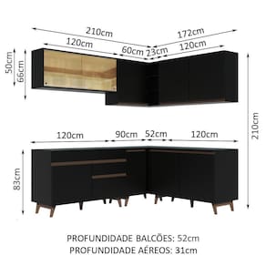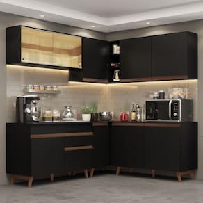 Os armários aéreos precisam ser fixados na parede. Os módulos de canto devem ser montados para o lado esquerdo, assim como mostram as imagens.