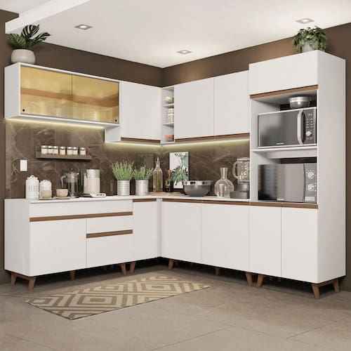 Cozinha Completa de Canto Madesa Reims 452001 com Armário e Balcão - Branco XV