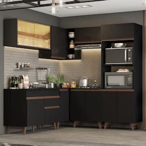 Cozinha Completa de Canto Reims com Armário Balcão Madesa - Preto