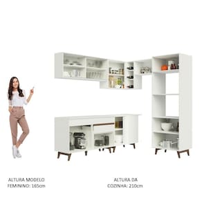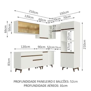 Por seu tamanho, é perfeita para organizar toda louça, utensílios e eletros. Além disso, todos os balcões acompanham tampo em MDP, que podem ser removidos para colocação de pia e/ou cooktop. A torre quente comporta forno e micro-ondas e possui abertura para dissipação do calor.