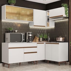 Esta cozinha por ser complementada por outros módulos da linha Reims da Madesa.