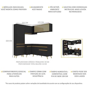 Cozinha Completa De Canto Veneza Gb Multimóveis Mp2054 Com Armário E Balcão Preta