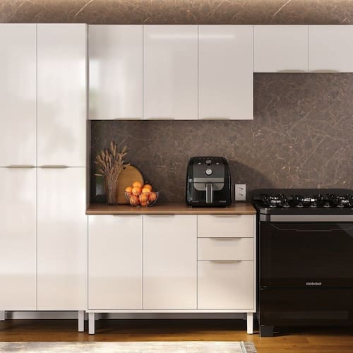 Transforme sua cozinha em um espaço organizado, moderno e cheio de estilo com a cozinha completa Itatiaia Renova branco. Composta por 4 peças, a cozinha inclui duas portas lisas, que trazem leveza e sofisticação ao ambiente, além de facilitar a visualização dos itens armazenados. O paneleiro é duplo garantido muito espaço para o dia a dia. Feita com materiais resistentes e de alta durabilidade, a cozinha Itatiaia Renova é ideal para quem busca um conjunto que alia design moderno com eficiência no armazenamento. Sua cor branca traz um toque clean, permitindo que ela se adapte a diferentes estilos de decoração. Dobradiça Slow Motion. Seu tampo é em Madeira com acabamento chanfrado na cor cedro e resistente a altas temperaturas de até 120°C. Acabamento da Prateleira: Pintura Escala de Brilho da Prateleira: Semi-Brilho Acabamento da Gaveta: Pintura Escala de Brilho da Gaveta: Semi-Brilho Material do Puxador da Gaveta: Metal Acabamento da Porta: Pintura Escala de Brilho da Porta: Semi-Brilho Material do Puxador da Porta: Metal Acabamento dos Pés: Polipropileno Acompanha Rodapé Decorativo: Não Acompanha Tampo: Sim Altura dos Pés: 16 cm Ambiente Principal: Cozinha Balcão Suporta Pia: Sim codigo_ean: 7900288133182 Complexidade da Montagem: Alta: deve ser montado por um montador especializado Cor: Branco Cor do Produto: Branco Cor Interna: Branco Escala de Brilho: Semi-Brilho Espessura do Tampo: 25 mm Gaveta com Chave: Não Itens Inclusos: 01 Cozinha Completa, Kit Ferragens e Manual de Montagem Linha ou Coleção: Renova Manual de Especificação Técnica: https://cdn2.madeiramadeira.com.br/atributo/itatiaia-aco/2877753-2679-1745585856592.pdf Manual de Montagem e Instalação: https://cdn2.madeiramadeira.com.br/atributo/itatiaia-aco/2877752-2679-17455858516497.pdf Marca: Itatiaia Material da Corrediça: Metálica Material da Dobradiça/Corrediça da Porta: Metálica Material da Gaveta: Aço Material da Porta: Aço Material da Prateleira: Aço Material do Fundo: Aço Material do Tampo: MDP Material dos Pés: Polipropileno Medida de cada item (A x L x P): 1 Paneleiro Duplo (220x70x45cm), 1 Armário 120 (69x120x30cm), 1 Armário 80 (65x80x30cm) 1 Balcão (88x120x53) modular: Sim Necessita Montagem: Sim O Balcão Acompanha Pia: Não Origem do Produto: Nacional Pés Reguláveis: Sim Peso: 89 kg Peso Máximo por Gaveta: 3 kg Peso Máximo por Prateleira: 14 kg Possui Pés: 08 Possui Portas: Sim Possui Prateleiras: Sim Possui recorte para Cooktop: Não Possui Rodízio: Não Possui Vidro: Não Recomendações de Uso, Manutenção e Limpeza: Limpeza com pano umedecido. Sapatas Niveladoras: Sim Sistema de Montagem: Pafusos e porcas Suporta Até (kg): 180 kg Tamanho Indicado da Pia: 120 cm largura por 53 de profundidade Tipo de Corrediça da Gaveta: Metálica Telescópica Tipo de Dobradiça da Porta: 35 mm Tipo de Puxador da Gaveta: Externo Tipo de Puxador da Porta: Externo