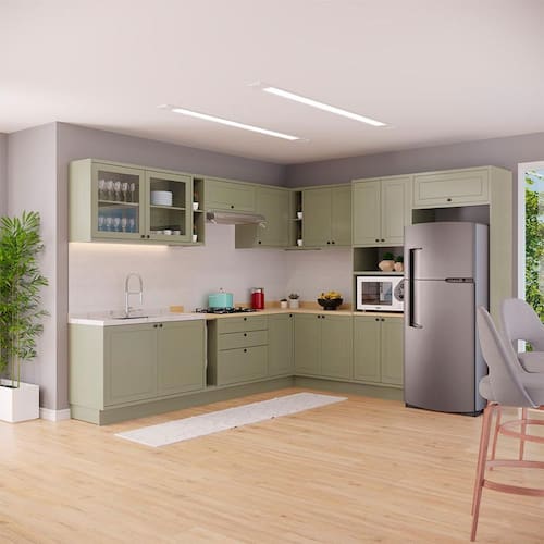 Que tal a Cozinha Completa Évora?Manter a cozinha organizada pode ser um desafio sem os móveis certos, por isso a estrutura integrada de balcão, armário aéreo e paneleiro do modelo Évora é essencial. Com compartimentos ideais para louças, utensílios e alimentos secos, além de gavetas práticas para talheres e pequenos objetos, ela torna a rotina mais prática e garante que tudo fique ao alcance durante a preparação das refeições. A coloração externa traz um toque elegante ao ambiente, criando um espaço acolhedor e perfeito para a família se reunir e desfrutar de momentos especiais com uma receita preparada com carinho, deixando a decoração exatamente como você sempre sonhou. Marca: Modern