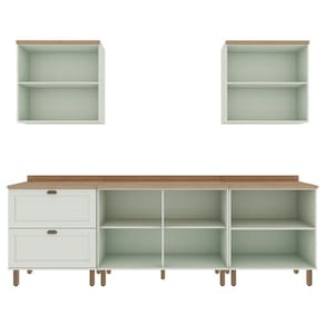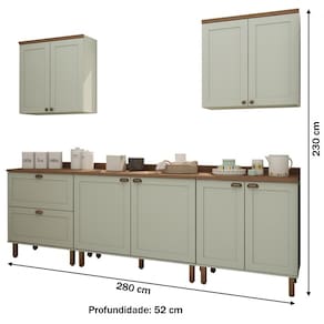O(a) Cozinha Completa Filadélfia 9 Portas 1 Gaveta Menta - Loja é produzido em MDF na escala de brilho Fosco, e possui um grau de dificuldade de montagem: Médio.