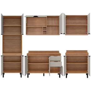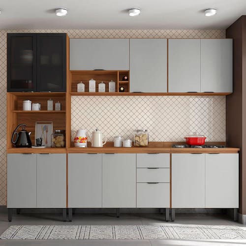 O(a) Cozinha Completa Firenze 13 Portas 2 Gavetas Amêndola Touch/Nude Prime Tx - Demóbile é produzido em MDP na escala de brilho Fosco, e possui um grau de dificuldade de montagem: Médio.