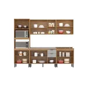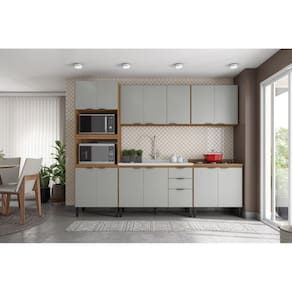 A cozinha modular FIRENZE é formada por uma torre quente com espaço para dois fornos de até 44L, um balcão 120cm com 3 portas e 2 gavetas para pia, um balcão de 80cm que possível usar cocktop,um aéreo 3 portas 120cm com prateleiras internas e um aéreo de 80cm com 2 portas. Seus pés são de polipropileno reguláveis se adequando as condições do chão, puxadores pretos com design moderno, corrediças e dobradiças metálicas. Estruturado em MDP com revestimento ultravioleta e acabamento fosco. Para garantir a qualidade do produto dentro da embalagem, as caixas são revestidas por um plástico termoencolhível e todas as peças são separadas por isomanta,tudo para preservar e evitar o atrito entre as peças dentro da embalagem. Acabamento da Prateleira: Pintura Escala de Brilho da Prateleira: Fosco Acabamento da Gaveta: Pintura Acabamento da Porta: Pintura Escala de Brilho da Porta: Fosco Acompanha Tampo: Não Ambiente Principal: Cozinha codigo_ean: 7909903359037 Complexidade da Montagem: Média: pode ser montado por mais de uma pessoa e/ou necessite de maior conhecimento para montagem Cor: Amendola/Nude Prime Tx Cor do Produto: Amendola/Nude Prime Tx Cor Interna: Amendola Escala de Brilho: Fosco Gaveta com Chave: Não Itens Inclusos: 1 Cozinha, Kit Ferragens, Manual de Montagem Linha ou Coleção: Firenze Manual de Montagem e Instalação: https://product-hub-prd.madeiramadeira.com.br/860142/documents/76cf9b59-fcbd-442d-ba50-76cc6f3f51ccosiCAofhr001cozinhafirenze.pdf Material da Dobradiça/Corrediça da Porta: Aço Material da Gaveta: MDP Material da Porta: MDP Material da Prateleira: MDP Material dos Pés: PVC Medida de cada item (A x L x P): Paneleiro Duplo Forno 219 x 70 x 52 / Armário Aéreo 3 Portas 120cm 67 x 120 x 29 / Balcão 84 x 120 x 52 / Armário Aéreo 2 Portas 80cm /Balcão 2P 80CM Necessita Montagem: Sim O Balcão Acompanha Pia: Não Origem do Produto: Nacional Pés Reguláveis: Sim Peso: 149,64 kg Peso Máximo por Gaveta: 3 kg Peso Máximo por Prateleira: 3 kg Possui Pés: 13 Possui Portas: Sim Possui Prateleiras: Sim Possui recorte para Cooktop: Não Possui Rodízio: Não Produto Montado: Sim Recomendações de Uso, Manutenção e Limpeza: Flanela Seca Sapatas Niveladoras: Não Sistema de Montagem: Parafusos, Cavilhas Tamanho Indicado da Pia: 119,5X52CM Tamanho Indicado do Tampo: 120 Tipo de Corrediça da Gaveta: Metálica Telescópica Tipo de Dobradiça da Porta: Simples Tipo de Puxador da Gaveta: Externo Tipo de Puxador da Porta: Externo Ean: 7909903359037