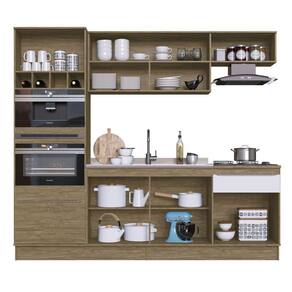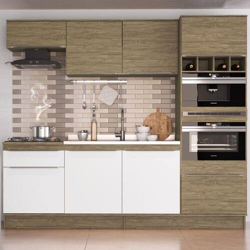 O(a) Cozinha Completa Flip 7 Portas 2 Gavetas Cf400r Wood/Branco - Decibal Móveis é produzido em MDP na escala de brilho Semi-Brilho, e possui um grau de dificuldade de montagem: Médio.