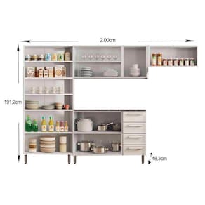 Abaixo segue os produtos do KIT: Cozinha Completa Gourmet 4 Peças (2 Armários + 1 Balcão + 1 Paneleiro) C4P64 Branco - Bertolini
