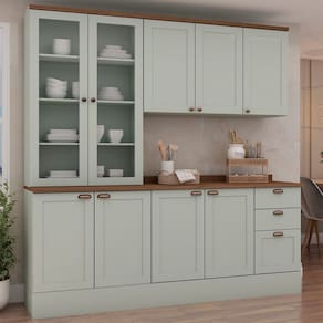 O(a) Cozinha Completa Iluminata 9 Portas 3 Gavetas 100% Mdf com Vidro Mint/ébano - Genialflex é produzido em 100% MDF na escala de brilho Fosco, e possui um grau de dificuldade de montagem: Médio.