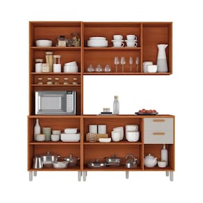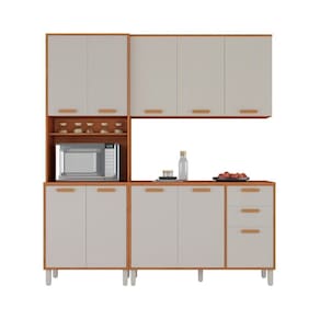 Estrutura em MDP 15mm com pintura UV de alta resistênciaAcabamento nas cores Cinamomo (corpo) e Fendi (portas e gavetas)Puxadores ergonômicos em ABSPés reguláveis em plástico PP para melhor ajusteDesign moderno e funcionalIdeal para cozinhas pequenas e bem planejadas