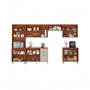 Composta por módulos amplos e bem distribuídos, a cozinha oferece ótimo aproveitamento interno, puxadores em ABS resistentes, pés reguláveis e dobradiças que facilitam o uso no dia a dia.