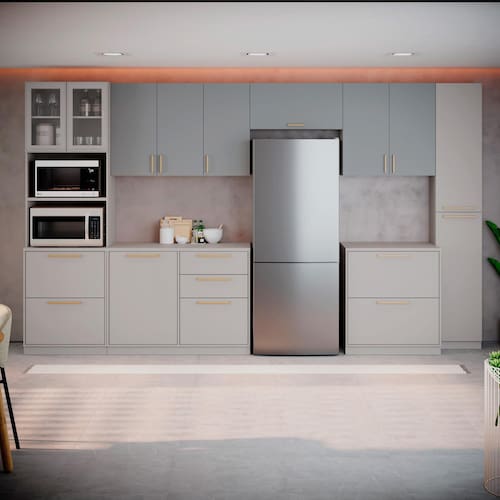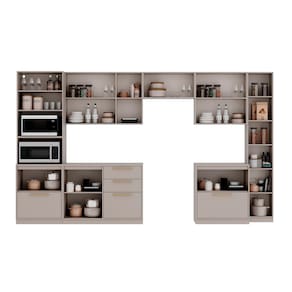 - Paneleiro (230x70x53 cm): 3 portas com nicho exclusivo para forno e micro-ondas