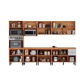 Madeira MDP 15mmA Cozinha Completa Itatiaia Ideale 7 Peças é prática, elegante e durável. Composta por armários aéreos, balcões funcionais e um paneleiro espaçoso, este conjunto traz organização e estilo para transformar a sua cozinha.