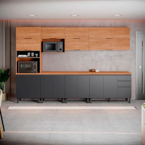 Madeira MDP 15mmA Cozinha Completa Itatiaia Ideale 7 Peças traz modernidade, funcionalidade e durabilidade em um só conjunto. Com acabamento nas cores Cinamomo e Grafite Intenso, a linha combina design sofisticado, praticidade e organização.