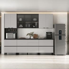 Detalhes que fazem a diferença na sua cozinha Puxadores em alumínio, modernos e duráveis Corrediças telescópicas, que garantem abertura suave das gavetas Dobradiças de 35mm com tecnologia slow motion, para fechamento silencioso Pés em plástico PS com regulagem de altura, que oferecem estabilidade mesmo em pisos irregulares Tampo em MDP, ideal para uso diário com ótima resistência Versatilidade e sofisticação para sua casa Com 270cm de largura, a Cozinha Completa Itatiaia Lumina se adapta perfeitamente a diferentes tamanhos de ambiente, oferecendo espaço inteligente para armazenamento e organização. Invista em uma cozinha planejada de qualidade com design moderno e aproveite toda a funcionalidade que só a Itatiaia oferece. Acompanha Manual de Instalação: Sim | Material predominante: Madeira MDF | Necessita Montagem: Sim | Tipos de móveis de cozinha: Cozinha completa Ean: 7892946461648