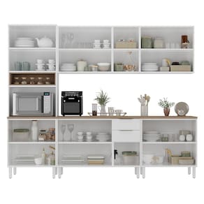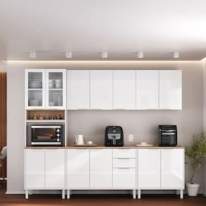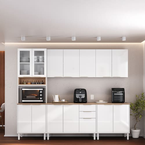 Design moderno com acabamento de alta qualidade A Cozinha Completa Itatiaia Renova, com 270 cm de largura, é a escolha ideal para quem busca elegância e funcionalidade em um só ambiente. Seu design moderno na sofisticada cor Branco Neve combina com diversos estilos de decoração, tornando o espaço mais aconchegante e prático. Composta por 14 portas de bater, 2 gavetas e 7 prateleiras internas, oferece organização inteligente para utensílios, mantimentos e eletrodomésticos. O nicho para micro-ondas integrado também contribui para otimizar o espaço da cozinha, tornando o ambiente mais funcional.