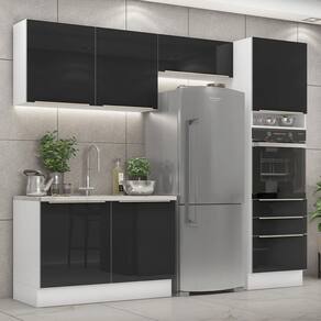 O acabamento da estrutura é branco e as portas e as frentes das gavetas possuem pintura preta. O processo é feito em Poliéster Protetor, que consiste na aplicação de 7 camadas de proteção resistentes a álcool, água e calor.