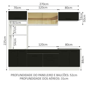 - 52 cm de profundidade nos módulos inferiores e 31 cm nos aéreos