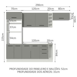 - 52 cm de profundidade nos módulos inferiores e 31 cm nos aéreos