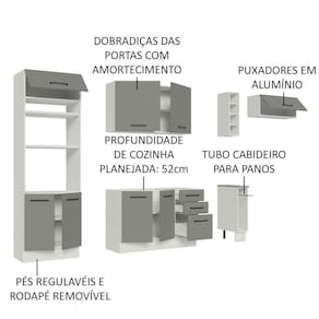Cozinha Completa Madesa Agata 290003 com Armário e Balcão (Sem Tampo e Pia) - Branco/Cinza