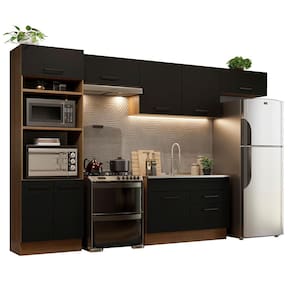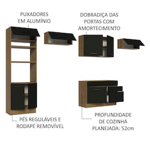 O acabamento da estrutura é no padrão amadeirado Rustic e as portas e frentes são pretas. É feito em Pintura Poliéster ecológica, com aplicação de 7 camadas de proteção resistentes a álcool, água e calor.