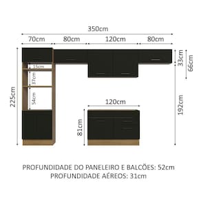 - 52 cm de profundidade no balcão e na torre e 31 cm nos aéreos