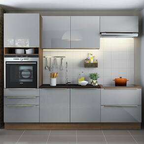 O espaço interno é ótimo, com profundidade de cozinha planejada: 60 cm. Além disso, é fabricada com itens de qualidade superior, como corrediças telescópicas, dobradiças metálicas e amortecedores para o fechamento suave das portas.